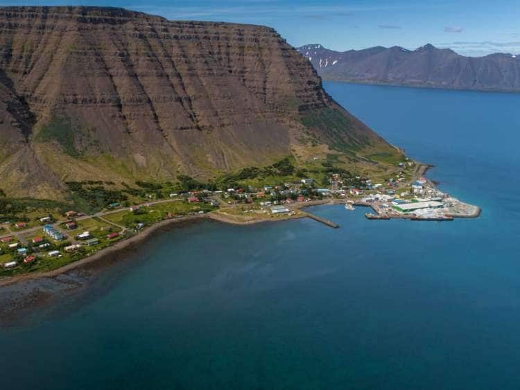 The picturesque village of Bíldudalur nestles in the Arnarfjörður fjord, second-largest the Westfjords region of northwestern Iceland. This spectacular fjord, which stretches for nearly 20 miles, shelters Bíldudalur from the harsh Atlantic winds, earning it the title of “good weather capital of the Westfjords.” The village was this region’s commercial hub during the 18th and 19th centuries, and most of its 200 or so residents work in the fishing and sea mineral processing industries. Bíldudalur boasts a rich music and cultural tradition, and hosts a folk music festival each summer. Icelandic folk tales have long told of sea monsters living in Arnarfjörður, and the Sea Monster Museum brings those tales to life through various displays, eyewitness accounts, and an interactive plinth that lets you “see” where the monsters are lurking.