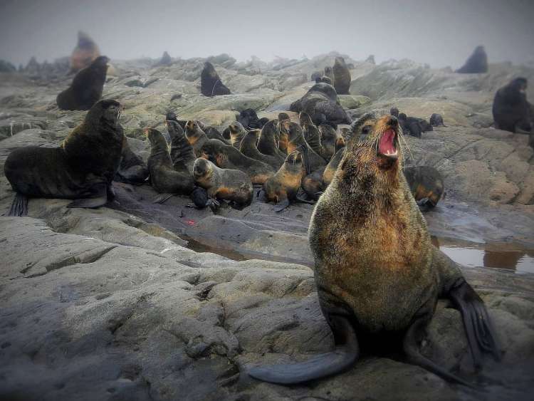 The Lovyshkis comprise a group of small, rocky islets scattered around the center of the Kuril archipelago in Far East Russia. Often shrouded in fog, the rocks are a magnet for Steller sea lions and northern fur seals, with tens of thousands of pinnipeds lounging atop. During the height of the breeding seasion, they also boast large populations of seabirds, including crested auklets and pigeon guillemots.