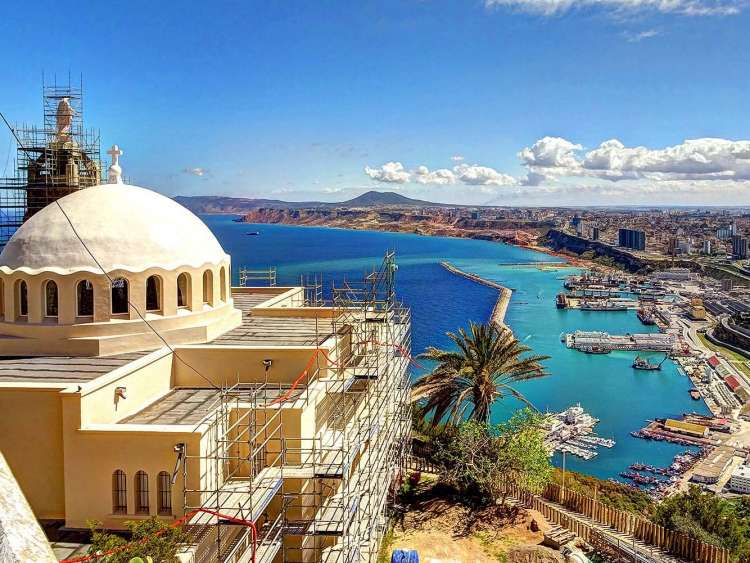 Oran has many visible cultural influences, stemming from its checkered colonial past. The city has thrived through early Islamic dynasties, Spanish occupation, Ottoman dominance and French colonization. The 15th century Santa Cruz fortress overlooks the city and harbor from Mount Murdjado. On the 1st of November Square is the City Hall, with its twin lion statues (the city’s name is from the Berber word for lion). In the Turkish El Houari district, see the Hassan Pasha Mosque and the nearby Palace of El Bey, a Moorish masterpiece from 1796. The “new city” of El Djedida, the large market is a good place to seek souvenirs including Berber jewelry and other crafts. Oran is also the birthplace of the popular folk music style rai.