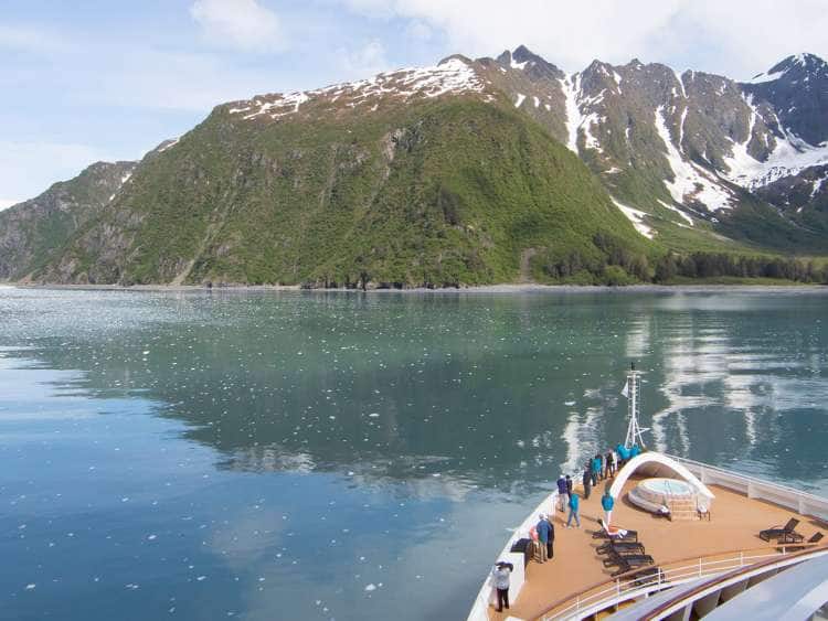 Gulls and wading birds are found nesting on nearby Slate and Squab Islands, while harbor seals may be seen patrolling the ice-choked waters or hauled out, taking a break on ice floes. Keep scanning the beaches, as a grizzly bear may wander out of the brush at any moment -- and vanish just as quickly!