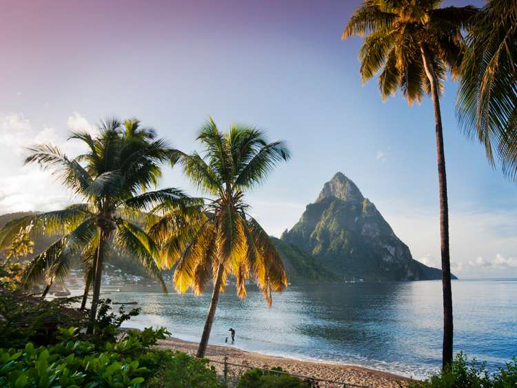Soufriere Bay is a wide bay on the southwestern coast of the island of St. Lucia in the Windward Islands. It is named for the town of Soufriere, which in turn refers to the still-somewhat-active volcano that spews sulfurous fumes and hot mineral water in the area. It is a beautiful stretch of coast, from the white sand beaches of the luxury Anse Chastenet resort to the towering, conical Pitons that loom some 2,500 feet out of the sea. The Pitons (Gros Piton and Petit Piton, are ancient volcanic plugs, today festooned with lush vegetation and occupied by numerous species of birds and mammals. They make an unabashedly romantic backdrop as your ship glides slowly by, no matter what time of day you pass them.