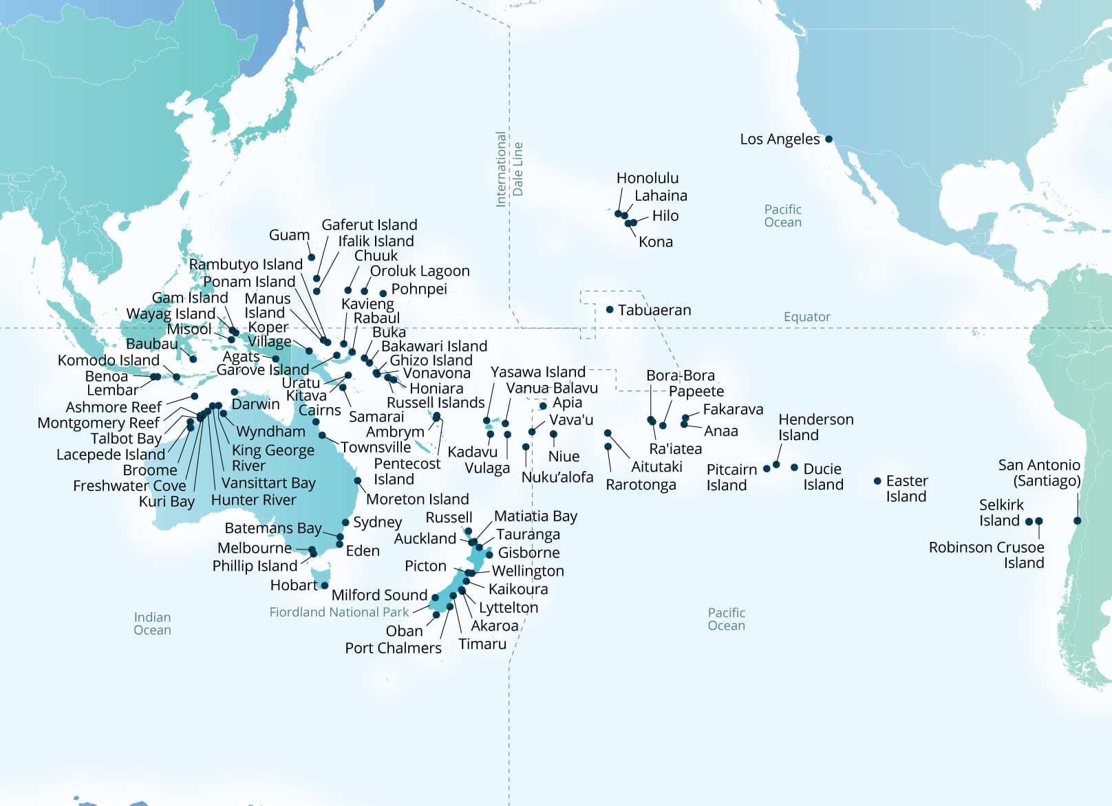 Suspended on the blue expanse of the South Pacific Ocean are worlds as different from each other as they are from anywhere else. Follow the course of the earliest native explorers who spread their cultures by canoe, guided only by the currents, the waves and stars. An astonishing variety of sights await you: towering peaks, steaming geysers and sprawling vineyards, mighty fjords and quaint villages, vivid coral reefs and — yes — koalas, kiwis and kangaroos.