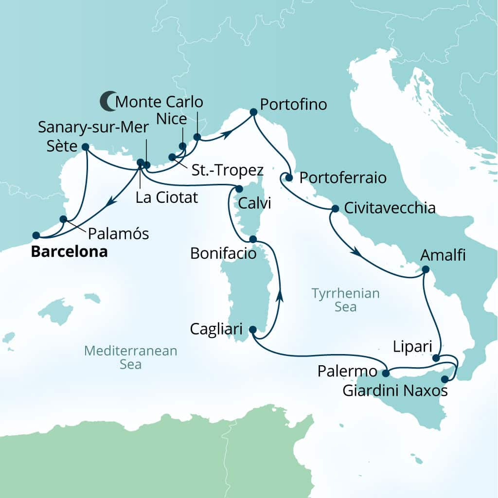 Map of itinerary 19-Day Mediterranean Yacht Harbors