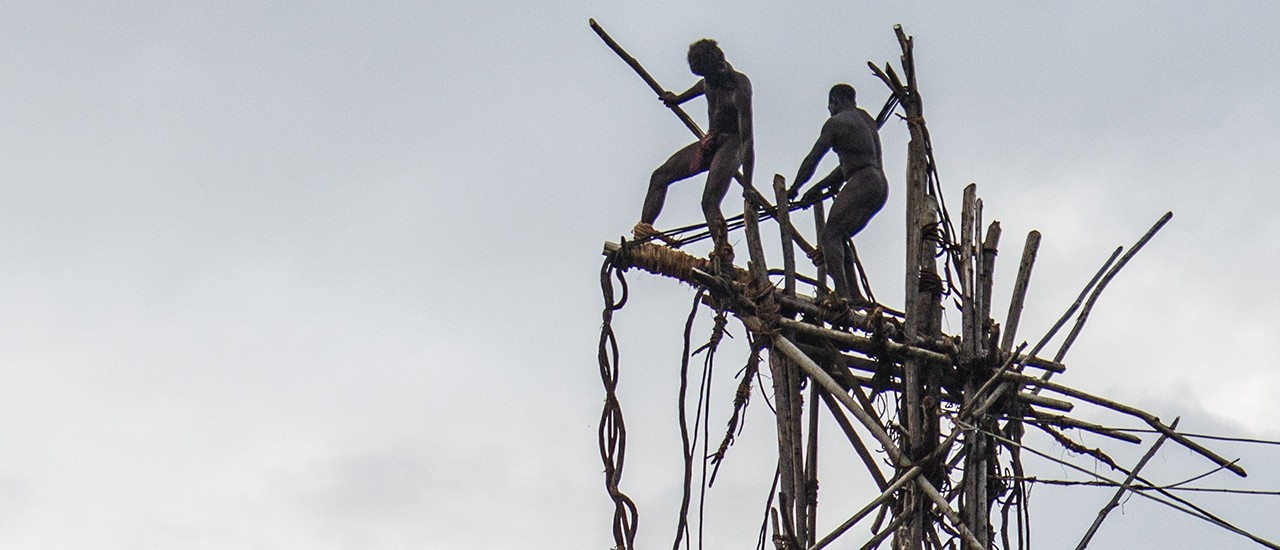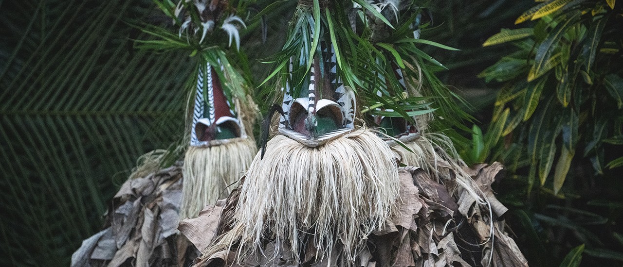 Join us for a special performance of a sacred dance the Baining people graciously agreed to share with our guests in the village hills outside of Rabaul, East New Britain. Dancers donning large masks made of bark cloth, painted with large expressive eyes, dance and sing around an enormous bonfire. The exciting finale of this dance is truly a sight to behold, as the wood has burned down and embers and sparks flare about the kicking dancers.