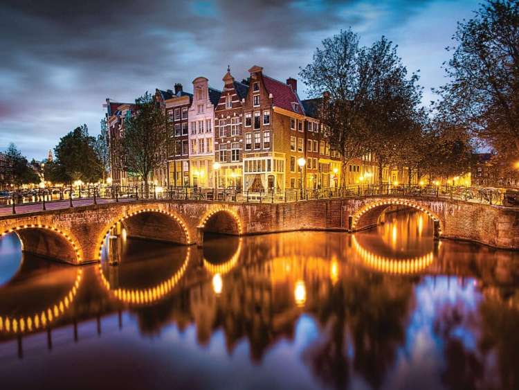 Amsterdam, the Kingdom of the Netherlands’ capital, is a sprawling city laced with 17th Century canals, which in themselves are a UNESCO World Heritage Site. It was one of the world’s most important ports during that century, known as the Dutch Golden Age, and remains highly ranked globally to this day in terms of livability, innovation and multicultural diversity, with over 175 nationalities represented. Canal tours are a preferred means of exploring the city and getting one’s bearings. The distinctive architecture of the canal-front merchant’s homes tends toward tall, narrow facades (houses were taxed according to their width) topped with ornate crow-stepped gables and equipped with overhanging hoists for lifting merchandise from the canal to the storage loft. The city possesses a wealth of carefully preserved architecture from its entire history, from the 14th Century West Kerk through the Art Nouveau period. The national Rijksmuseum is one of the world’s most famous art museums, renowned for its collection of works by Amsterdam native Rembrandt van Rijn and Johannes Vermeer, as well as Early Dutch masterworks. Located nearby on Museum Square are the Van Gogh Museum, with the world’s largest collection of works by him, and the Stedelijk Museum of contemporary art. The Anne Frank House is also a popular attraction, preserving the home and attic hideaway where the young Jewish diarist was sequestered during the Nazi occupation during World War II. The city is also renowned for its variety of galleries offering art from around the world; for its globally-influenced culinary scene and for the notorious Red Light District where the sophisticated Dutch liberalism is given free rein.