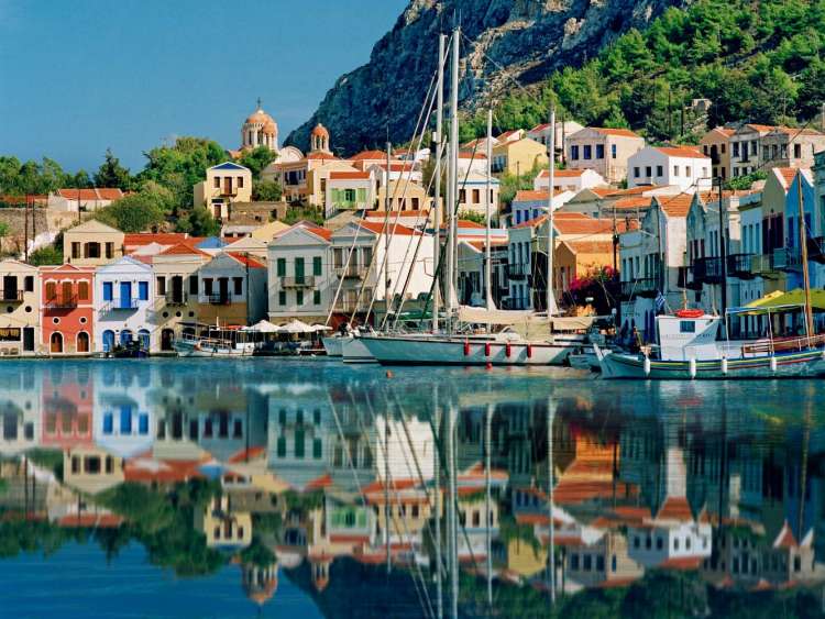 The original name of the island, Megisti, means “largest” in Greek, which is odd since it is the smallest of the Dodecanese Islands. It is large, however, when compared with the scattering of islets that dot this stretch of the Aegean just off Turkey’s shore. Sailing into its pretty harbor, you will see the 14th Century Crusader castle atop a red rock hill gave the town its modern name of Kastellorizo. The red-hued minaret and dome of the 18th Century Ottoman Mosque hints at the long history of conquest and reconquest that has haunted the island. After a peak of success in shipping and fishing in the 19th Century, the mansions along its coasts are an ironic reminder to the island’s current population of fewer than 500 souls. Many people emigrated from the island to Perth and Sydney in Australia, where they are affectionately known as “Kazzies.” Visitors are discovering it, however, thanks to the Oscar-winning 1991 film Mediterraneo which was filmed here. The roof of the town cathedral, dedicated to Saints Constantine and Helena, is supported by ten monolithic columns of granite appropriated from the Lycian temple of Apollo at Patara on the Turkish mainland. Atop the highest peak at Vigia, the ruins of the island’s ancient Acropolis includes a tower and cisterns used well into the modern era on this island with no source of fresh water. The island also boasts a huge Blue Grotto sea cave, much larger than the famous one at Capri.