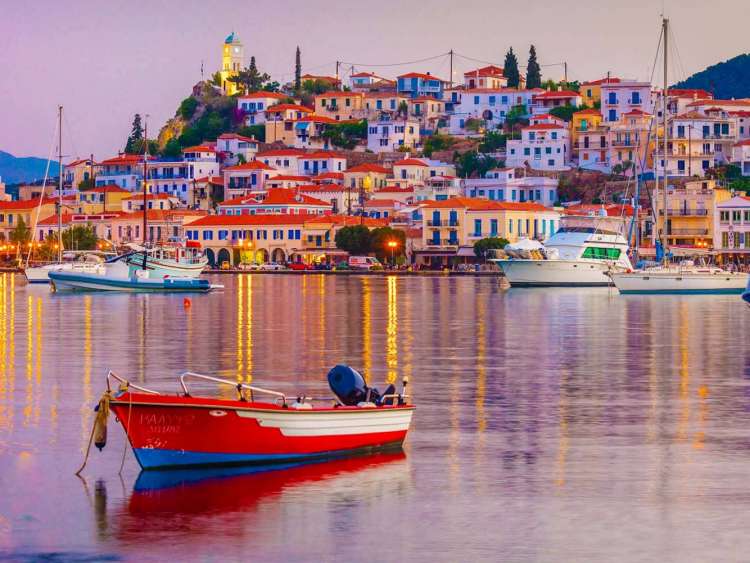 Athenians often escape for long weekends on Poros, located just an hour away from the Greek capital in the Saronic Gulf. (Poros actually comprises two small islands, Sphaeria and Kalaureia, which connect via a bridge.) Just beyond the yacht-filled marinas lies a Greece of bygone days, where time naturally slows down so you can better appreciate the pretty beaches and lush pine forest that extends to the water’s edge. The 18th-century Monastery of Zoodohos Pigi (“life-giving spring”) welcomes with its lovely gardens, while the archaeological museum in Poros Town displays an impressive collection of artifacts dating to the Mycenaean period. You can climb the town’s clock tower for stunning views across the harbor. Take a leisurely stroll along the seafront promenade, dine on the day’s catch in a tiny family-run taverna, or simply relax on a sunny stretch of sand. Popular Askeli Beach offers families plenty of facilities, while northernmost Vagionia Beach is wrapped in lush greenery for the ultimate seclusion.