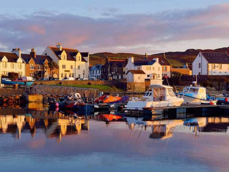 Port Ellen is a photographer's paradise nestled along the southern coast of Islay. With its charming whitewashed cottages encircling a sheltered bay, it is a sight to behold. The town's prosperity is entwined with the whisky industry. Established in 1825, Port Ellen was home to the island's first distillery. Just to the east, you'll find three of Islay’s iconic distilleries – Ardbeg, Lagavulin, and Laphroaig – each contributing to the town's rich heritage. Nearby, the 8th-century Kildalton High Cross stands as one of Scotland's finest Celtic crosses, flanked by the ruins of an old parish church and intricately carved medieval grave slabs. The MacDonald Lairds once ruled the Hebrides from Dunyvaig Castle. Although now in ruins, this fortress built between the 13th and 16th centuries still maintains a majestic presence over Lagavulin Bay.
