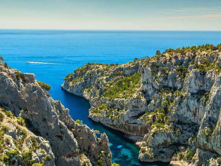 Tucked between the towns of La Ciotat and Bandol lies an idyllic stretch of the Cote d’Azur where three tiny harbors have merged into one community. Saint-Cyr-sur-Mer is conjoined with the Vieux Port de Les Lecques and the Nouveau Port de La Madrague. The rocky coastline here is backed by pine forests and renowned vineyards, and in summer Les Lecques attracts bathers to its two-km sandy beach. Coastal footpaths invite you to explore in both directions. The eight-km path eastward toward Bandol includes breathtaking views at Pointe Grenier and a picturesque tiny beach at Port d’Alon. The Fregate Golf Club offers 18-hole and nine-hole courses with panoramas of the sea and the island of Embiez. In Saint-Cyr itself, explore the Musée de Tauroenton displaying relics from a local Roman villa, and visit the Place Portalis with a gold-plated smaller replica of the Statue of Liberty donated by the original sculptor Frédéric Bartholdi. Further afield lie Cassis and boat rides to view the Marseille calanques.